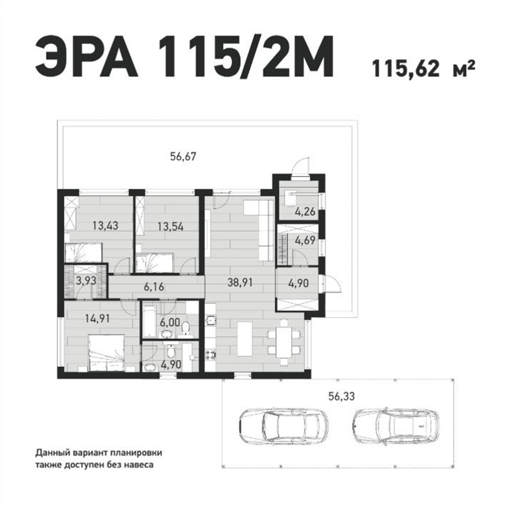 Данный вариант планировки доступен без навеса